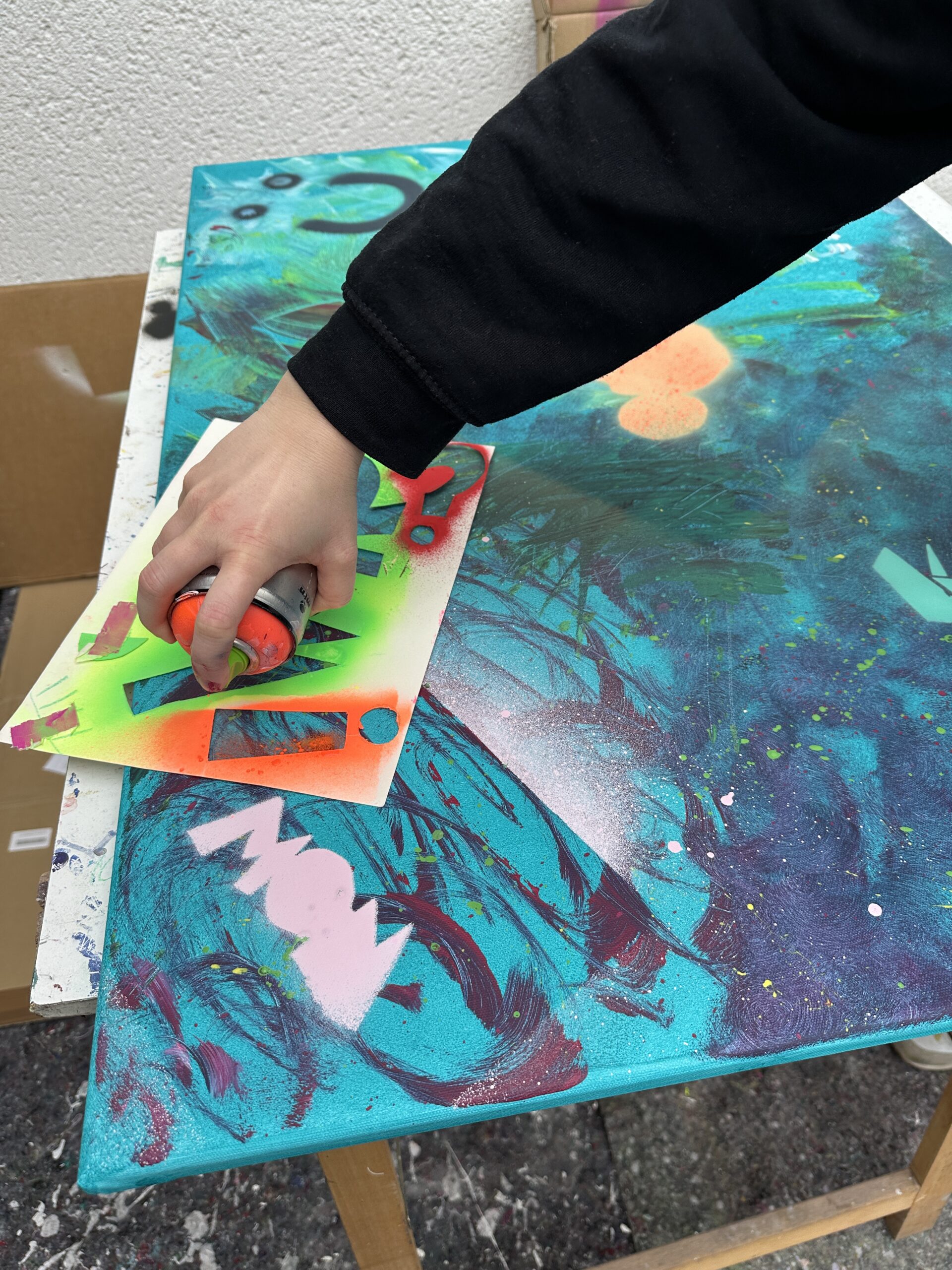 Materialliste: Leinwände (max. 100x100cm) gerne auch bemalte Leinwände die überarbeitet werden können. Acrylarben, Kreide, Kohle, verschiedene Papiere, Fotos ( nur Kopien ) die sich auch für Collagen eignen, Sprühfarben …